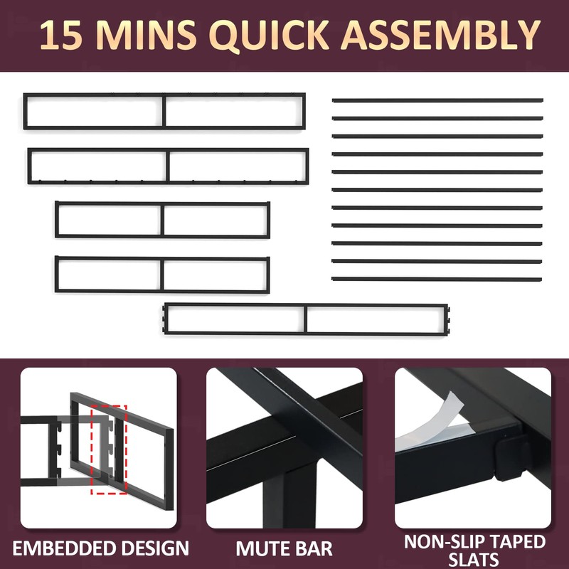 - 【No Box Spring Needed】The sturdy metal slats are designed to support and extend the life of your latex, memory foam or innerspring mattress without the need for a box spring.