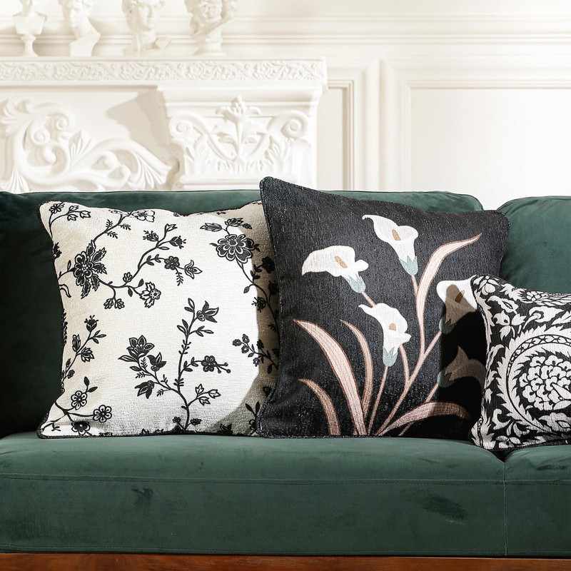 bilin gaier Black Throw Pillow Covers,Elegant Floral White Calla Lily Pattern Linen Pillowcases,Decorative Square Pillow Covers Cushion Covers for Couch Bed Sofa Chair 18x18 Inches