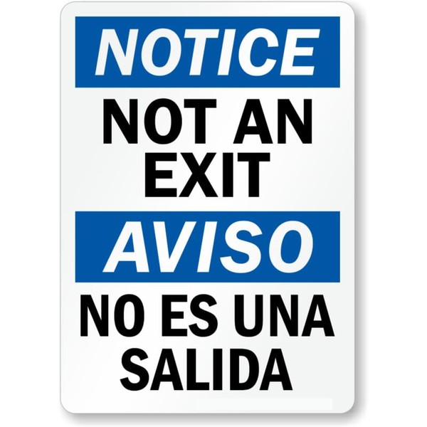 Bilingual Not An Exit 8"x12" Aluminum Weatherproof Sign b00102a