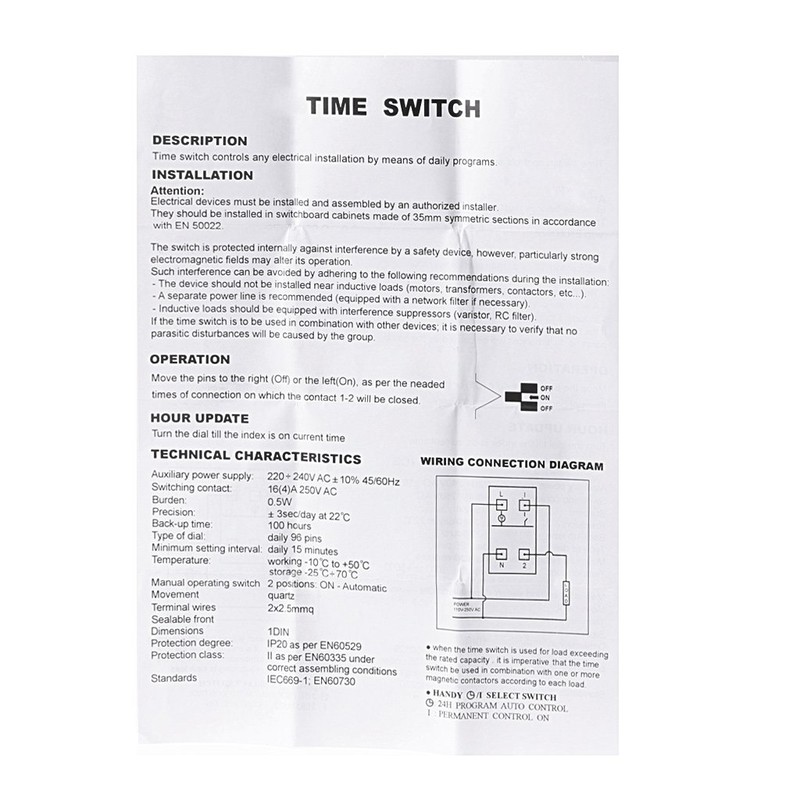 Fuse time: 100 hours. Dial type: daily 96 pins.
