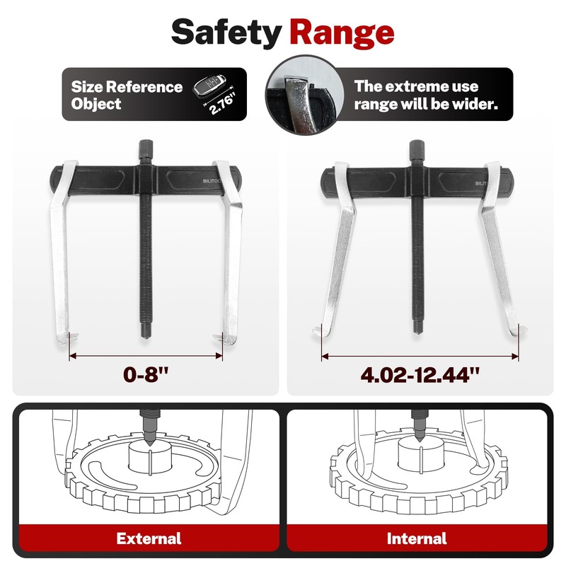 - There are 5 different sizes of jaw puller for you to choose to deal with different parts (small, medium and large): 3", 4", 6", 8", 10"