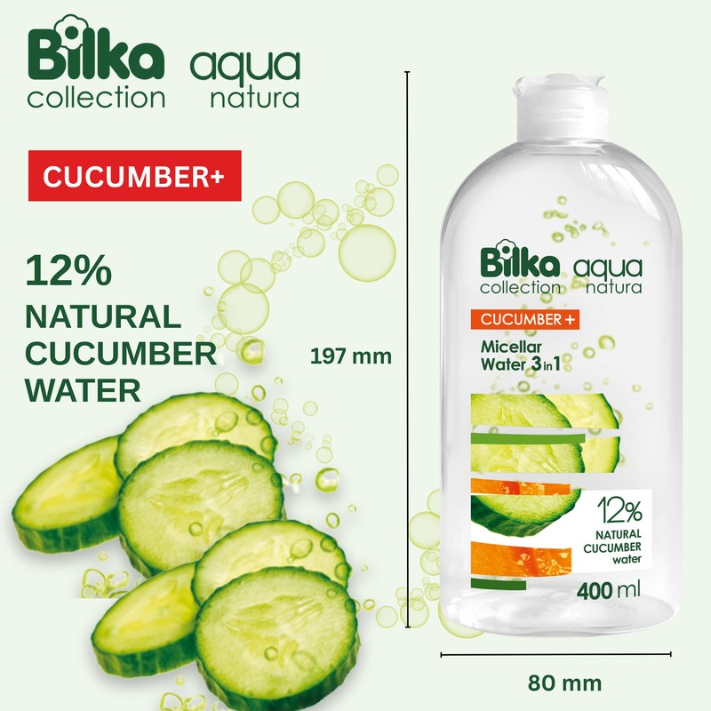 Bilka Collection Aqua Natura Micellar Water 3-in-1 with Organic Cucumber Water - Makeup Remover and Facial Cleanser - Alcohol Free - Gentle Skin Care - 400ml