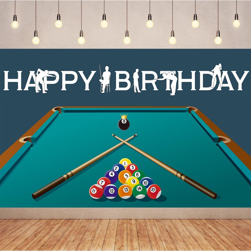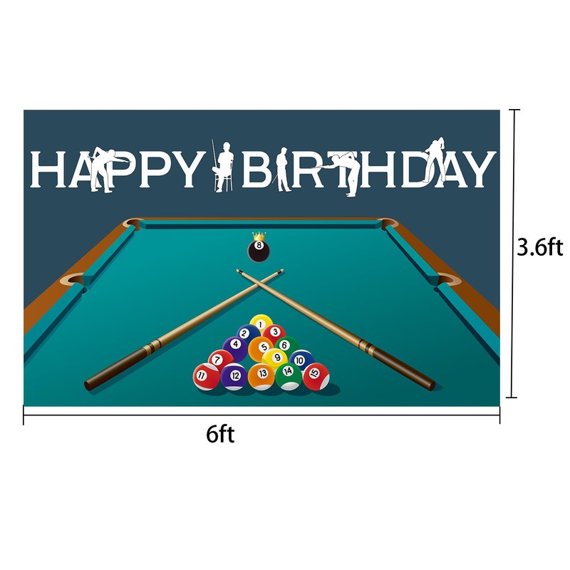 Billiard Pool Balls Happy Birthday Backdrop 6x3.6ft Snooker Contest Beginning Entertainment Game Photography Background Theme Party Fiesta Banner Table Decor Photo Booth Props.