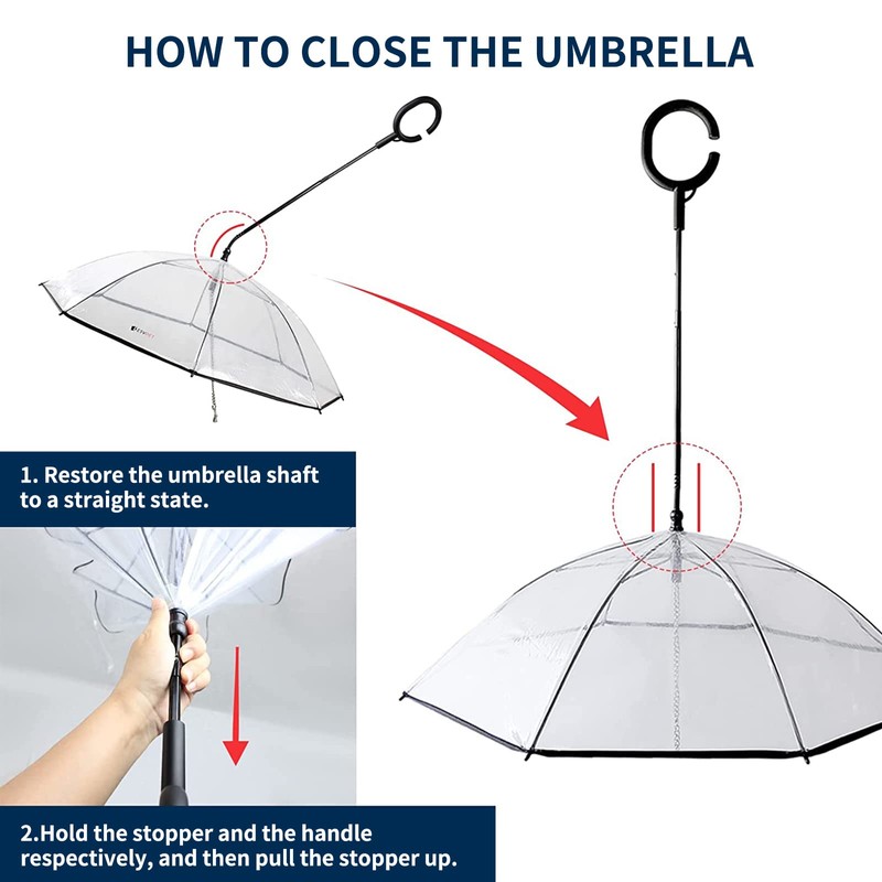 - Especially Design: Billionchains pet umbrella is clear, it can gives owner plenty of visibility for keeping an eye on dog while walking; Adjustable handle length is perfect; Upgrade C-shape handle and overturn-180°shaft can improve comfort when gripping the umbrella handle. the steel leash design can hold the dog don’t worrying about the dog getting lost.