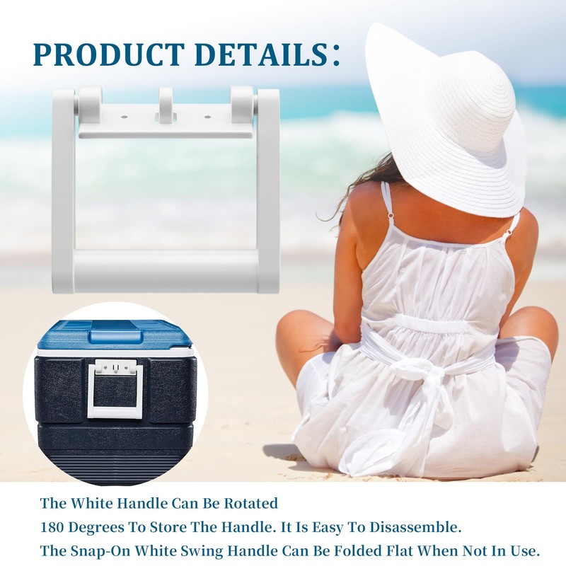 - Simple Installation: Cooler Handle Before Installation, Can Rotate And Swing The White Handle 360 Degrees. After Installation, The Handle Can Be Rotated 180 Degrees To Store The Handle. It Is Easy To Disassemble.The Cooler Handle Replacement Parts White Swing Handle Can Be Folded Flat When Not In Use.