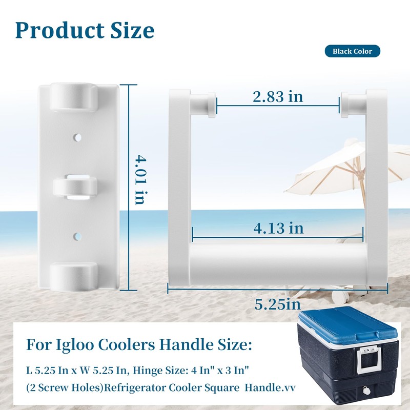 - For Igloo Coolers Part Handle Size: L 5.25 In x W 5.25 In, Hinge Size: 4 In" x 1.79 In" (4 Screw Holes) Refrigerated Refrigerator Cooler Square Handle,Cooler Handle Replacement Parts 2 pcak.
