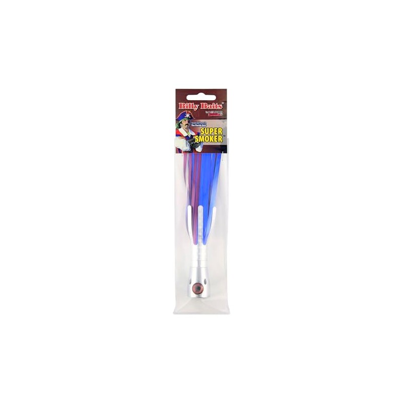 Billy Baits Super Smoker and Super Smoker II trolling lures are designed for serious offshore anglers who demand long-lasting action and proven fish-attracting performance. Both models weigh 2 oz and measure 8 inches, making them ideal for trolling speeds between 6 and 20 knots. The original Super Smoker features a jetted head with inner and outer jets that generate a powerful smoke trail and dynamic skirt motion to provoke strikes from wahoo, mahi, tuna, and more. The Super Smoker II builds on this design by combining the same jetted head action with the lifelike presentation of a Sea Witch-style hair skirt. Its two-part plated aluminum construction resists damage and provides greater durability than plastic competitors. Whether you're running a clean trolling spread or using dead bait combinations, these lures are built to deliver consistent offshore success.
