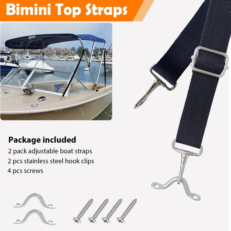 • Package included 2 pack adjustable boat straps for bimini boat covers, Bimini boat straps are suitable for most size bimini boat tops and boat awnings