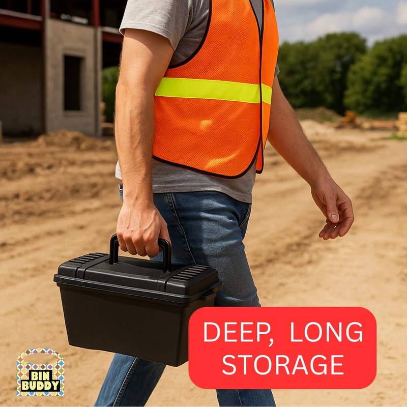 BIN BUDDY Heavy-Duty Plastic Tool Box | 11" Long Storage Bin with Secure Latch, Carry Handle & Durable Build – Deep Organizer for Tools, Hardware & Accessories – Ideal for Home, Garage, Jobsite