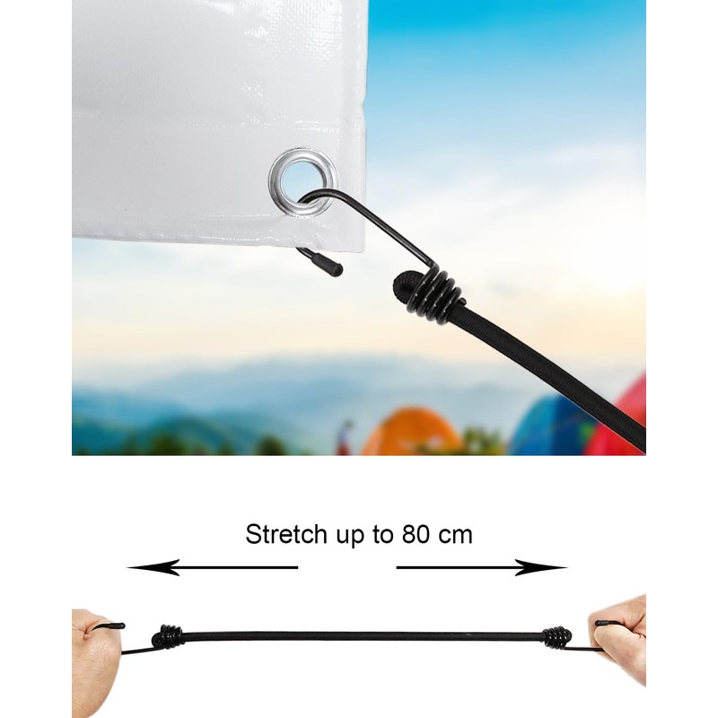 • Natural Latex: Bungee cords are made of quality latex material, heavy duty bungees with hooks can be used for a long time outdoor and indoor. Sunproof, waterproof and hardwearing. Elastic bungee straps can be stretched to double the length.