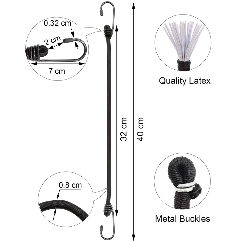 • Quality Design: The black bungee cords with hooks overall length 40cm, you can join two or more bungee straps with hooks together to get a longer length.