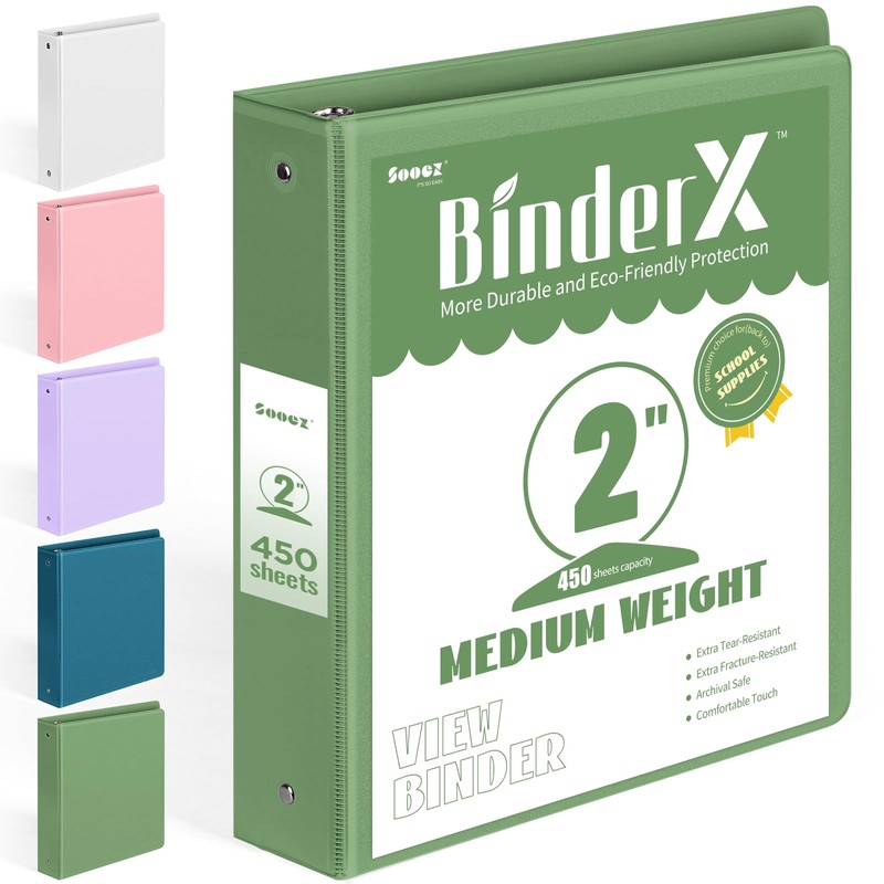 - Unveiling BinderX — the eco-friendly 2 inch binder from Sooez. Made from cutting-edge, PVC-free, and BPA-free materials, it is 100% recyclable and meets international standards.