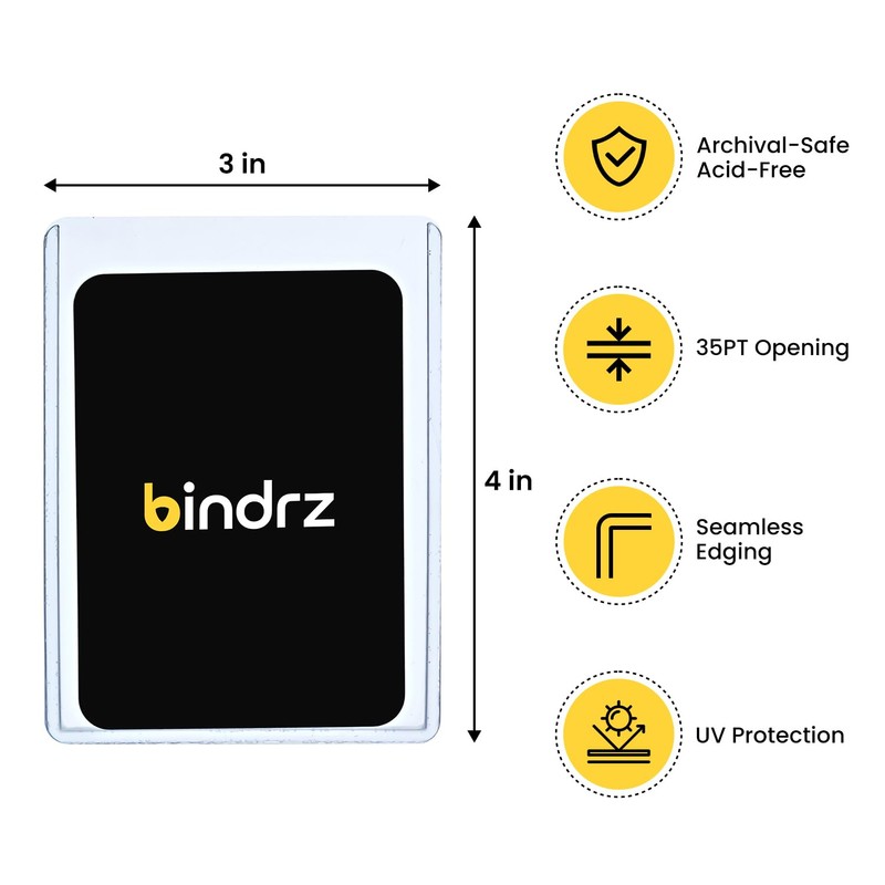 - PRECISE FIT - Meticulously sized at 3" x 4", offering a snug and secure fit for standard-sized trading cards. The 35PT opening fits all standard sized cards and ensures that your cards are snugly enclosed, preventing any unnecessary movement.
