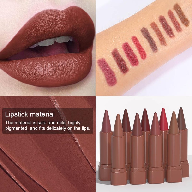 Transform your lip game with this innovative 2-in-1 lip combo set that combines the precision of a lip liner with the comfort of a matte lipstick. The lipstick features a cone-shaped tip for precise lining and a creamy lipstick for full coverage. Create stunning gradient effects and perfectly contoured lips with this all-in-one tool. The highly pigmented formula delivers rich, long-lasting color that stays put throughout your day. The lightweight, soft matte finish feels comfortable on your lips while providing intense color payoff. The crayon form makes application effortless, whether you're creating subtle definition or bold, dramatic looks. Perfect for achieving that coveted ombre effect, this versatile lip combo lets you blend and build color to your desired intensity. The cheeky shade adds a playful pop of color to any makeup look. For best results, start by outlining your lips with the pointed tip, then fill in with the lipstick end for a flawless finish.
