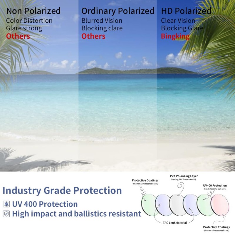 - 2.Enhanced Visual Clarity: The polarized lenses reduce glare from reflective surfaces like water and roads, offering improved visual clarity and a more comfortable viewing experience.