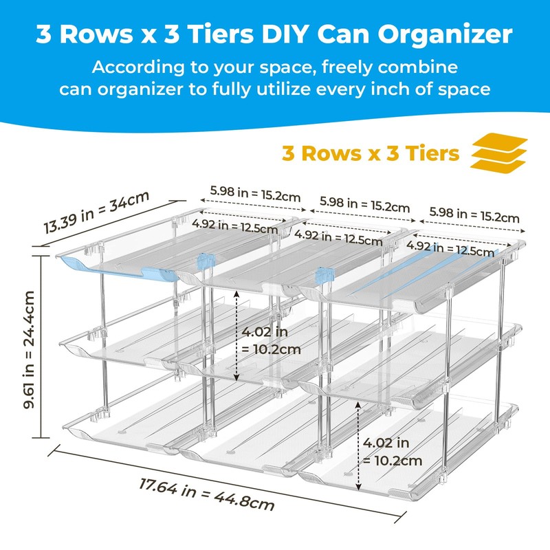 - 【Modular Flexibility】The pantry can organizer includes 3 rows x 3 tiers that work together or separately. Customize layouts for pantry, cabinet, fridge, kitchen, countertop etc.