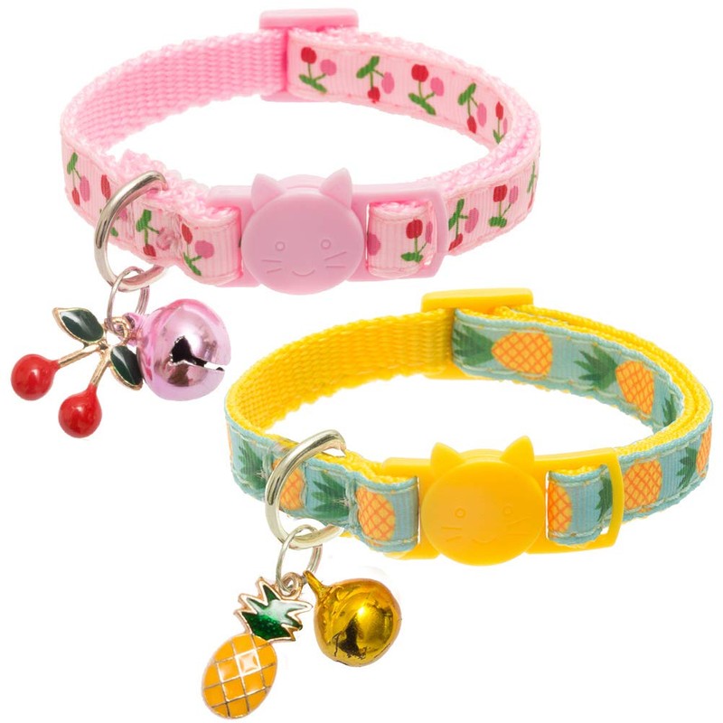 BINGPET Breakaway Cat Collar with Bell, 2 Pack Safety Adjustable Cat Collars Set, Pineapple & Cherry