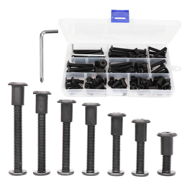 binifiMux 70pcs Black M6 x 15/20/ 25/30/ 35/40/ 50mm Flat Head Bolt Joint Connecting Bolts Phillips Screws Rivet Cap Nuts Assortment Kit, Furniture Connector Rivet Bolts with Dowel Nuts