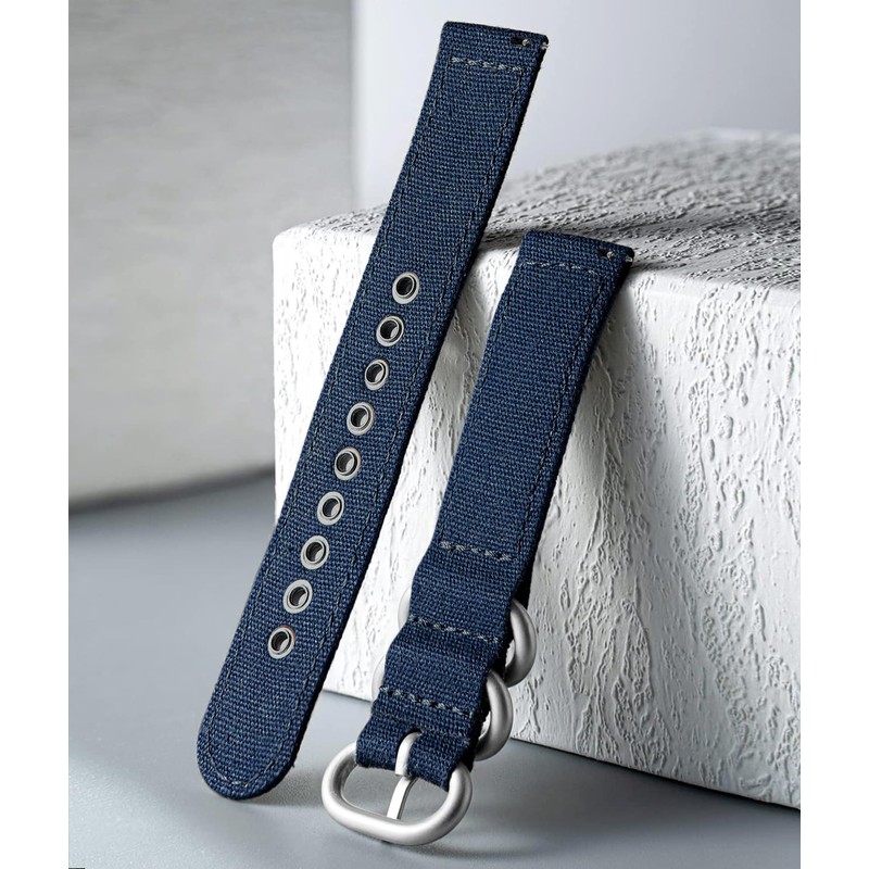 - About canvas watch strap: material: canvas fabrics; colour: black, khaki, army green, blue, dark blue, white, brown, grey; width: 18 mm, 20 mm, 22 mm, 24 mm; strap length: 185-215 mm; thickness: approx. 1.5 mm; buckle colour: black, silver. Available in 8 colours and 4 sizes, the good choice to personalise your watch. You can personalise your watch according to your own style. As long as the size is appropriate, this also applies to the smartwatch bracelet