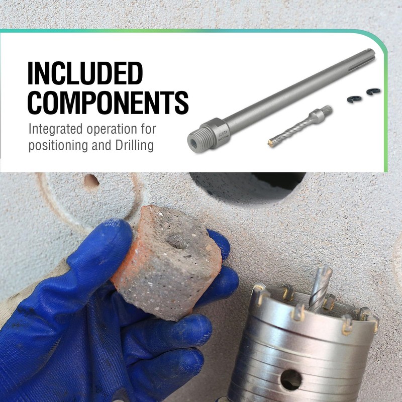 - COMPONENTS INCLUDED: 1 connecting rod-300mm (11-13/16") with SDS-Mas, 1 center drill, and 2 spring pad.