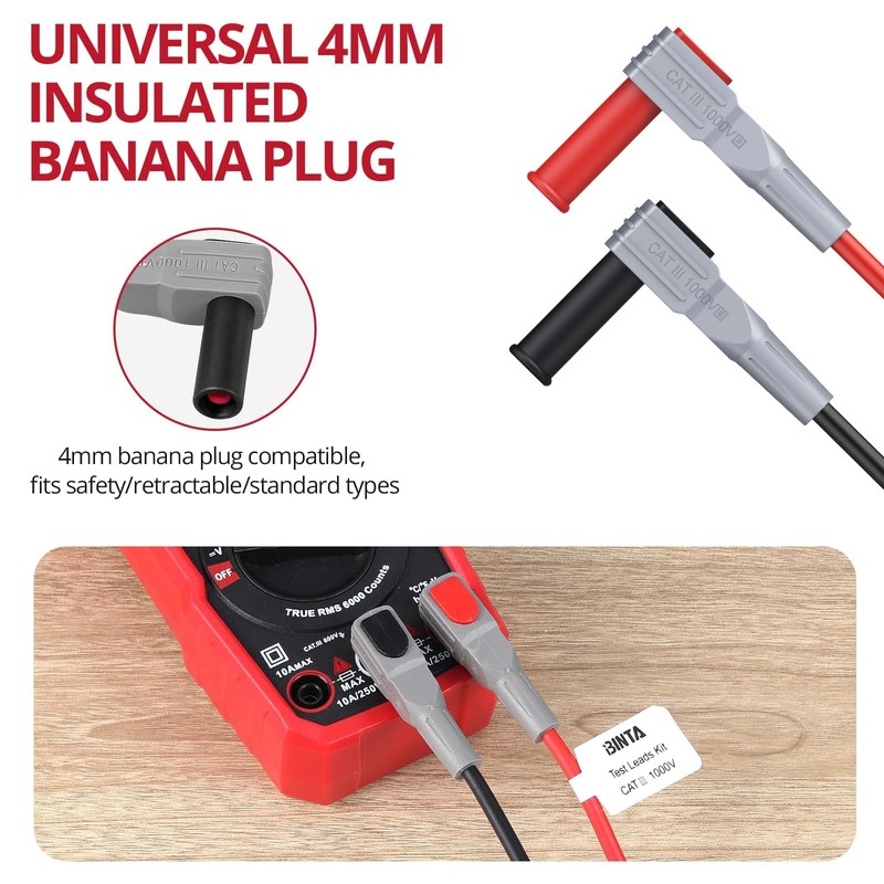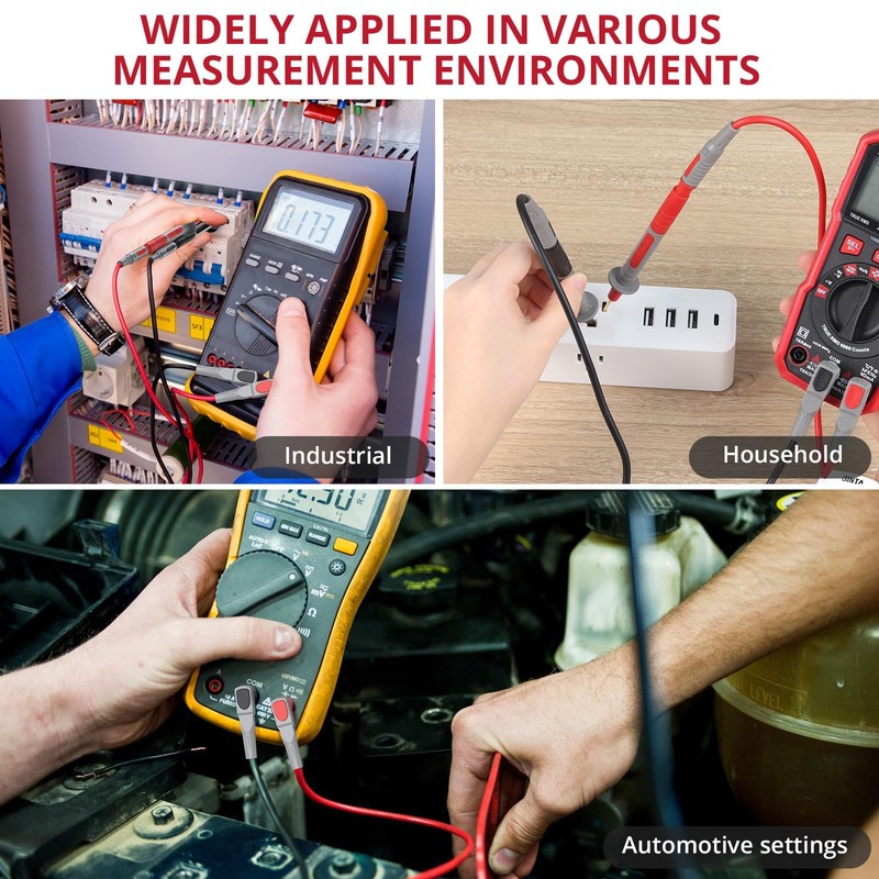 • 【Wide Compatibility】The test leads featuring 4mm universal banana plugs are compatible with most standard multimeters and testing instruments. Suitable for diverse measurement environments, they’re widely used in automotive diagnostics, electronic measurements, home DIY, and more