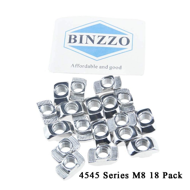 BINZZO Sliding T Slot Nuts 4545 Series M8 18 Pack T Nuts Carbon Steel Nickel Plated Half Round Roll in Sliding 10mm Slot Aluminum Profile Accessories for T Slot Aluminum Profile 45 x 45 Series