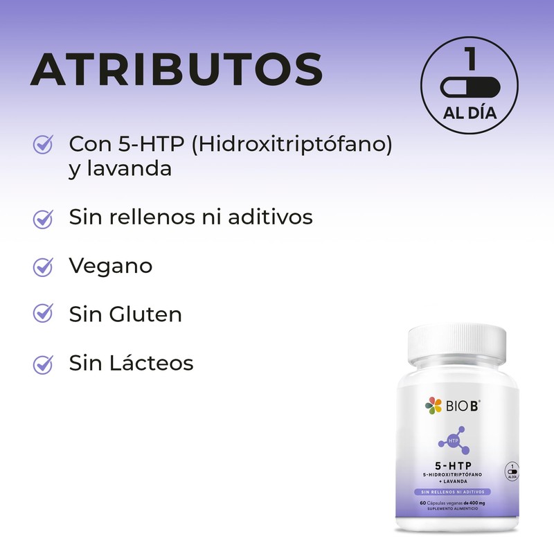 BIO B | 5-HTP + Lavanda 60 Cápsulas (2 meses), 100mg de 5-HTP (5-hidroxi-triptófano) + 300mg de lavanda