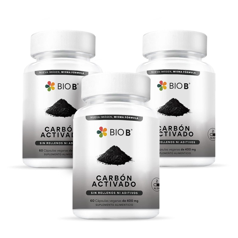 BIO B | Carbón Activado de Coco 3 Pack de 60 cápsulas veganas cada uno