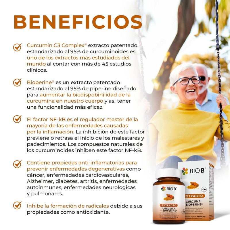 BIO B | Extracto de Cúrcuma + Bioperine® | 60 cápsulas veganas