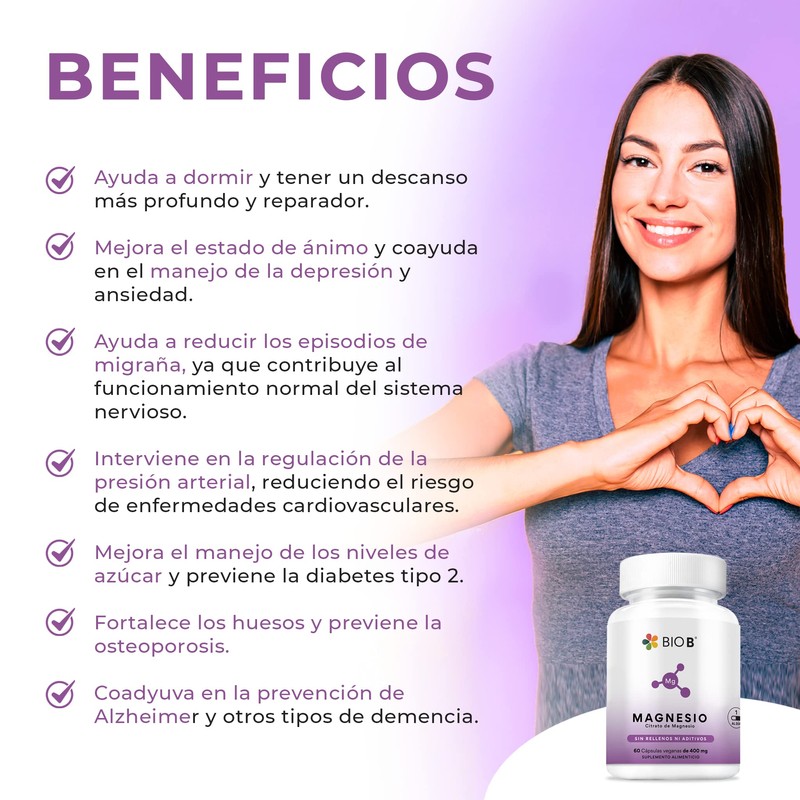 - ✅Coadyuva en la prevención de Alzheimer y otros tipos de demencia. Ayuda a reducir los episodios de migraña, ya que contribuye al funcionamiento normal del sistema nervioso.