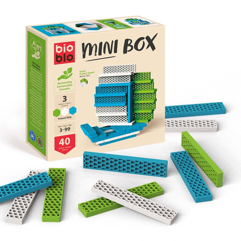 - Box contents: the Mini Box Friend Ship Mix contains a total of 40 organic buns in blue, green and white. Dimensions (L x W x H): 17 x 17 x 5.5 cm. Weight: approx. 0.8 kg