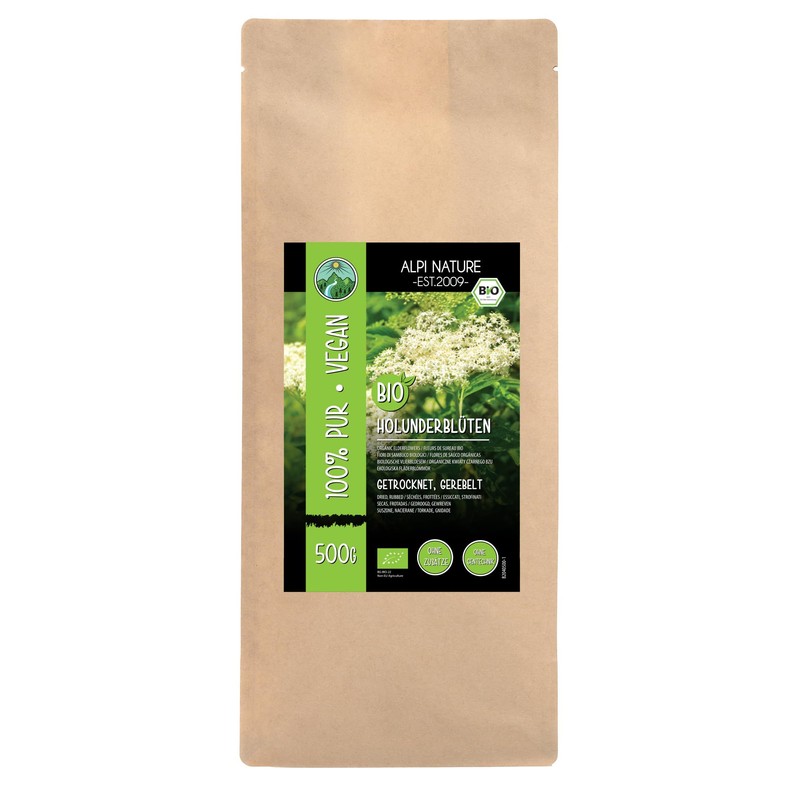 BIO Holunderblüten getrocknet (500g), Bio Holunder Blüten gerebelt, Holunderblüten aus Wildsammlung, Holunder Tee Bio, Holunderblütentee 100% natürlich