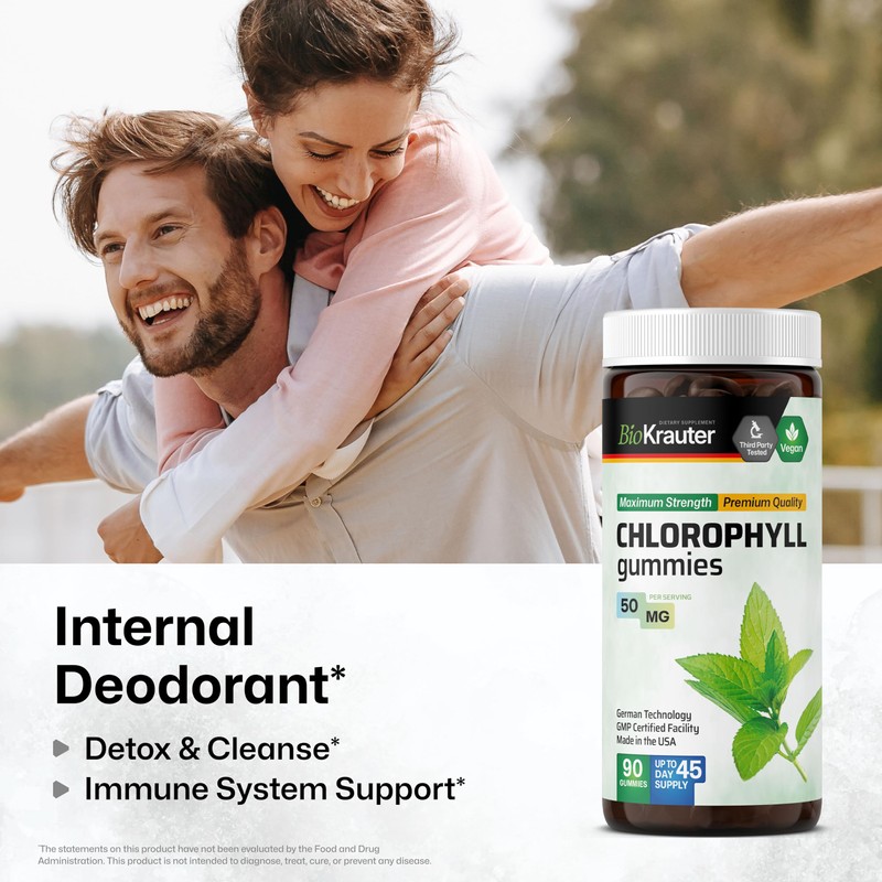 - Chlorophyll Gummies for Detox: BioKrauter chlorophyll supplements, made from Sodium Copper Chlorophyllin (commonly known as chlorophyll), provide an easy and pleasant way to support detoxification.