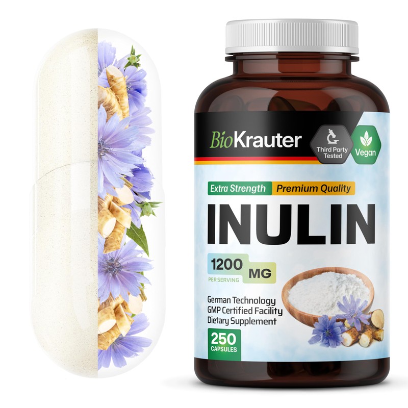 BIO KRAUTER BIO KRAUTER Inulin Powder Capsules - 1200 mg Strength - 250 Count - Pure Soluble Fiber Supplements - Chicory Root Fiber Capsules for Digestive Support - Vegan