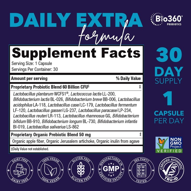 • IMMUNITY SUPPORT: Bio360 Probiotic offers essential support for your immune system, featuring clinically proven strains like Lactobacillus salivarius. A powerful probiotic like this helps promote your body's natural defenses, providing a strong barrier against harmful pathogens and promoting overall health.