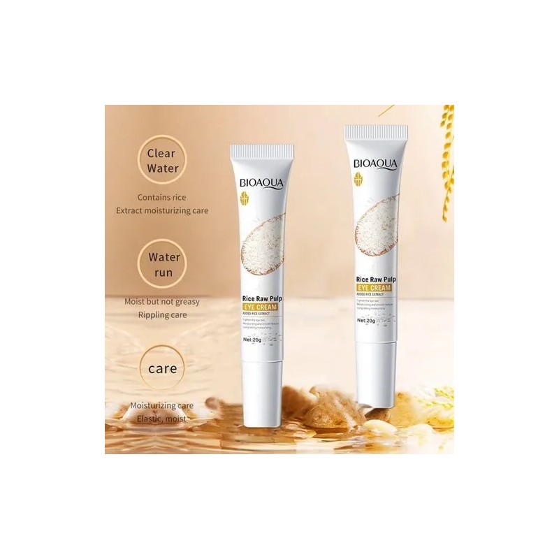Bioaqua Crema Facial con Extracto de Arroz y Ácido Hialurónico, Aclara y Atenúa Ojeras, Uso Día y Noche, Todo Tipo de Piel