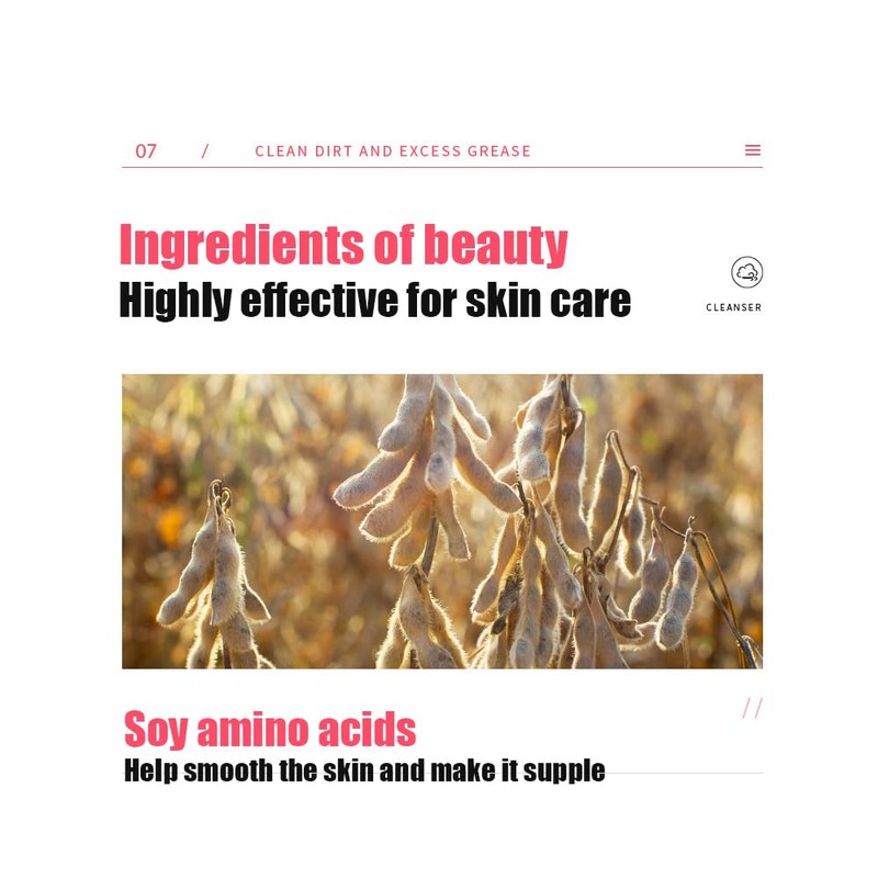 - Deep Cleansing: Removes dirt, oil, and makeup residue while maintaining your skin's natural moisture balance. Amino Acid Formula: A mild yet powerful cleansing base that nourishes and hydrates while cleansing.
