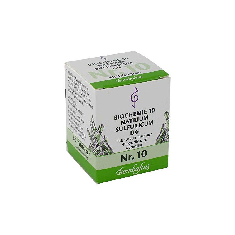 Biochemistry 10 Sodium Sulfuric D 6 and D 12, tablets. Areas of application: registered hom opathic medicine and therefore without indication of therapeutic indication.