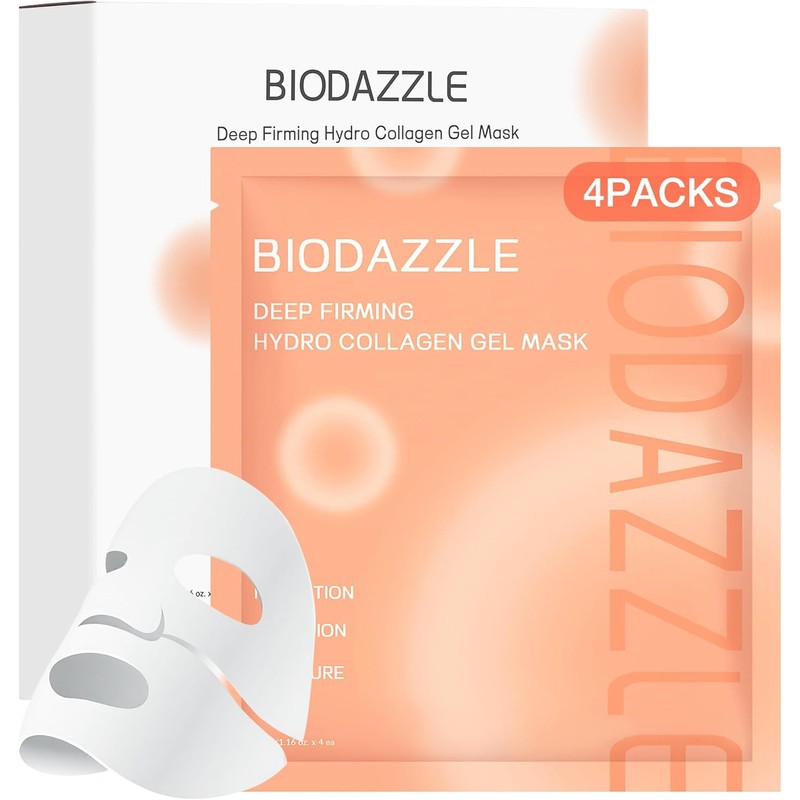 BIODAZZLE Collagen Overnight Deep Hydrating Face Mask, Glass Glow Skin,Elasticity Firming And Moisturizing,33gx4ea