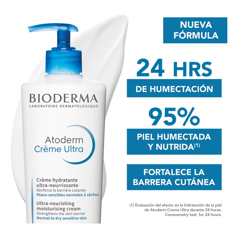 La gama de Bioderma Atoderm se ha inspirado en los tratamientos usados por dermatólogos y ha desarrollado el tecnología D.A.F.™ que purifica y refuerza la tolerancia de la piel. Atoderm te acompaña siempre con la Crema Ultra Nutritiva humectante, para piel normal a seca. Su fórmula única fortalece la barrera cutánea, proporcionando humectación hasta por 24 horas. Ideal para adultos, niños y bebés.
