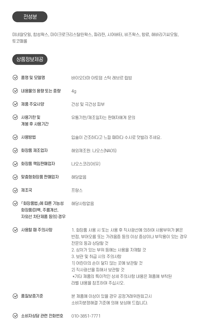 Bioderma Atoderm Stick Levres Lip Balm 4g, 2 packs / 바이오더마 아토덤 스틱 레브르 립밤 4g, 2개