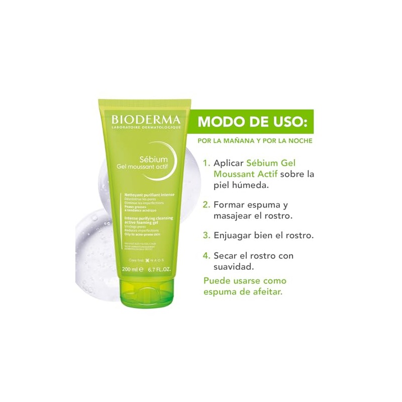 🌟 💄 BIODERMA, Sébium Gel Moussant Actif Anti-Acné, Limpiador Facial, Reduce Brotes, Skincare Piel Grasa, 200ML 💄 🌟