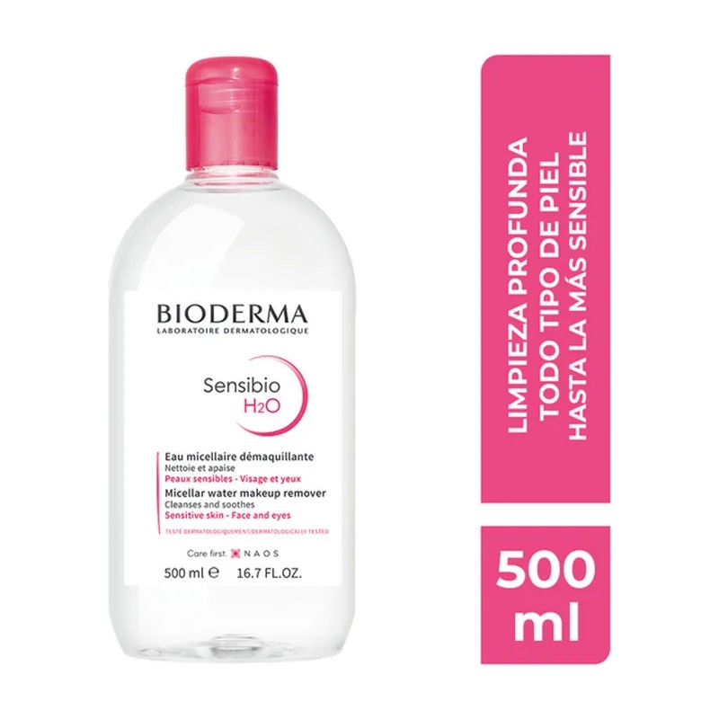 Sensibio H2O de Bioderma es el aliado perfecto como agua micelar para el rostro y cuello, eliminando las impurezas y desmaquillando el rostro protegiendo la barrera cutánea.