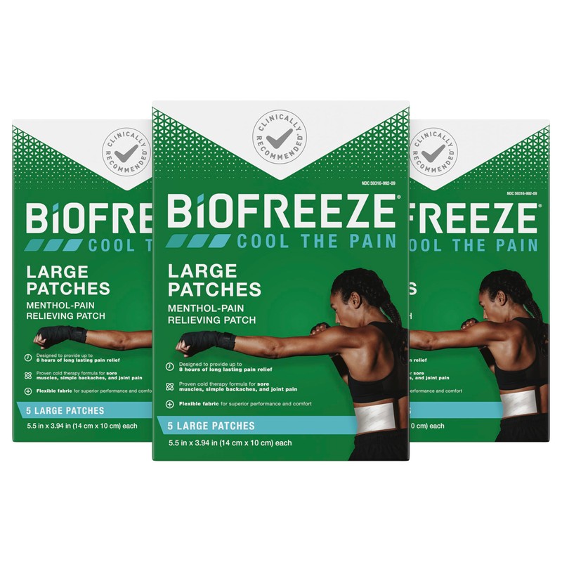 Biofreeze Biofreeze Pain Relief Patches, Arthritis Pain Reliver, Knee & Lower Back Pain Relief Patch, Sore Muscle Relief, Neck Pain Relief, FSA Eligible, 3 Pack (5 Biofreeze Menthol Patches)