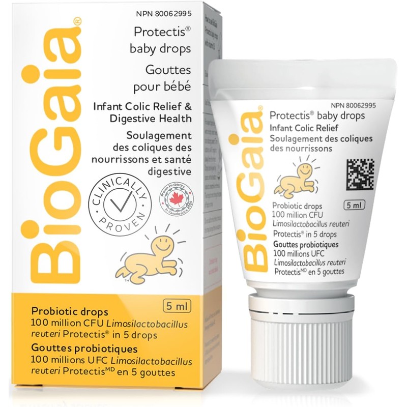 BioGaia Probiotic Baby Drops es un suplemento probiótico en gotas diseñado para apoyar la salud digestiva y fortalecer el sistema inmunológico de recién nacidos, bebés y niños pequeños. Contiene Lactobacillus reuteri Protectis, una cepa probiótica natural y segura que ayuda a equilibrar la flora intestinal, reducir los cólicos y mejorar la digestión. Su presentación en gotas facilita la administración diaria.