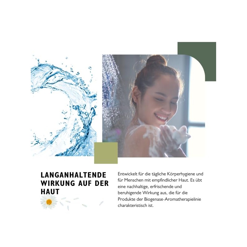 - ✅ DAUERHAFTE WIRKUNG AUF DER HAUT: Entwickelt für die tägliche Körperhygiene und für Menschen mit empfindlicher und empfindlicher Haut. Es hat eine dauerhafte, weichmachende und beruhigende Wirkung auf die Haut, die für die Produkte der Biogenase-Aromatherapie-Reihe charakteristisch ist.