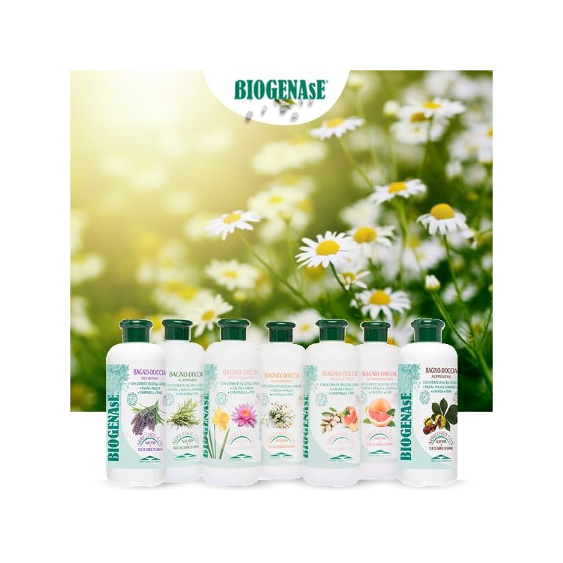 Biogenase - Entspannendes Duschgel mit Kamille - Gel angereichert mit Aloe Vera und Weizenkeimextrakt - Feuchtigkeitsspendendes Badegel, ohne Parabene - Für alle Hauttypen - 500 ml