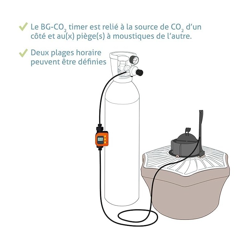 • Biogents - CO2 mosquito traps: the BG CO2 timer can limit CO2 consumption to the activity times of mosquitoes