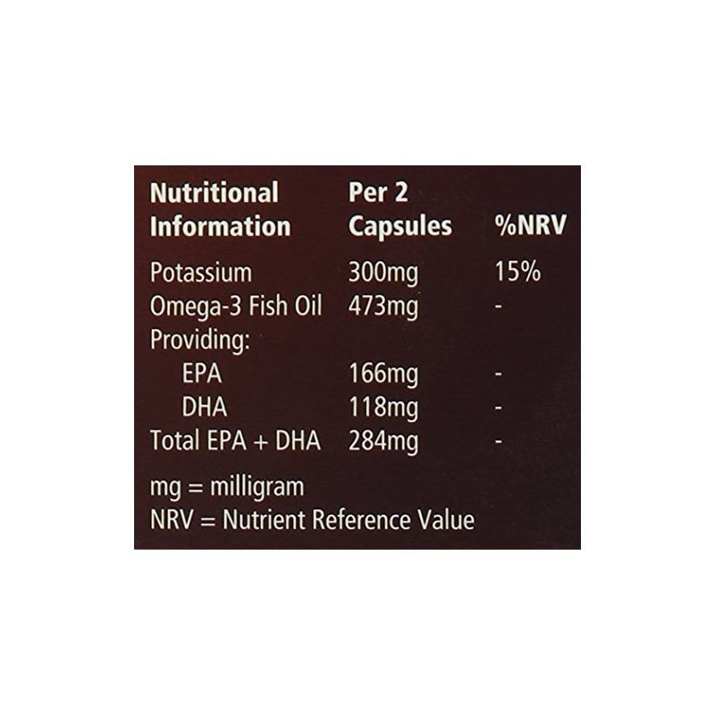 • Delivers Potassium to support Blood Pressure as well as a concentrated blend of Omega-3 essential fatty acids EPA and DHA for normal heart function