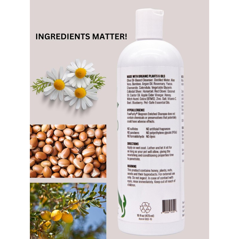- CONDITIONING: Biogreen Enriched Shampoo is highly conditioning to help improve texture and manageability of the coat, leaving it soft, smooth and easy to groom.